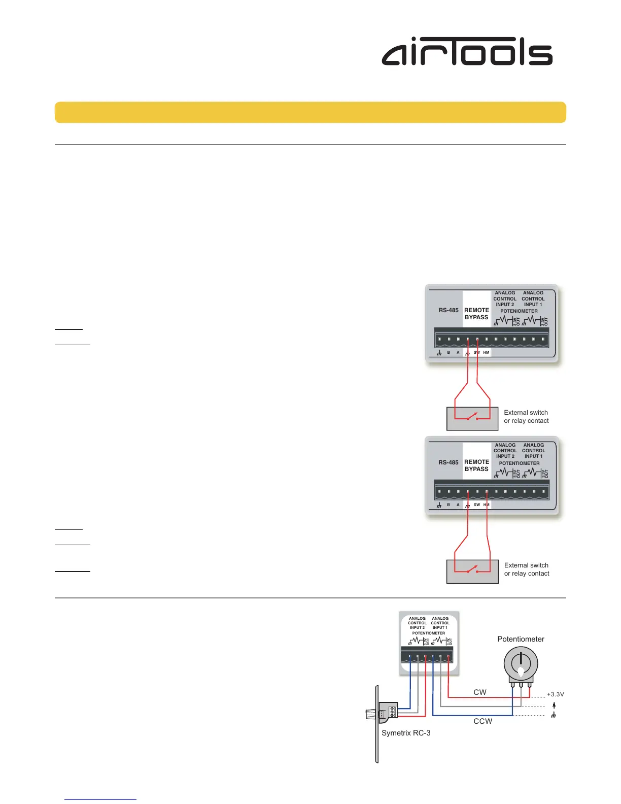 The figure right shows the connection of a contact closure to the SW Bypass function of