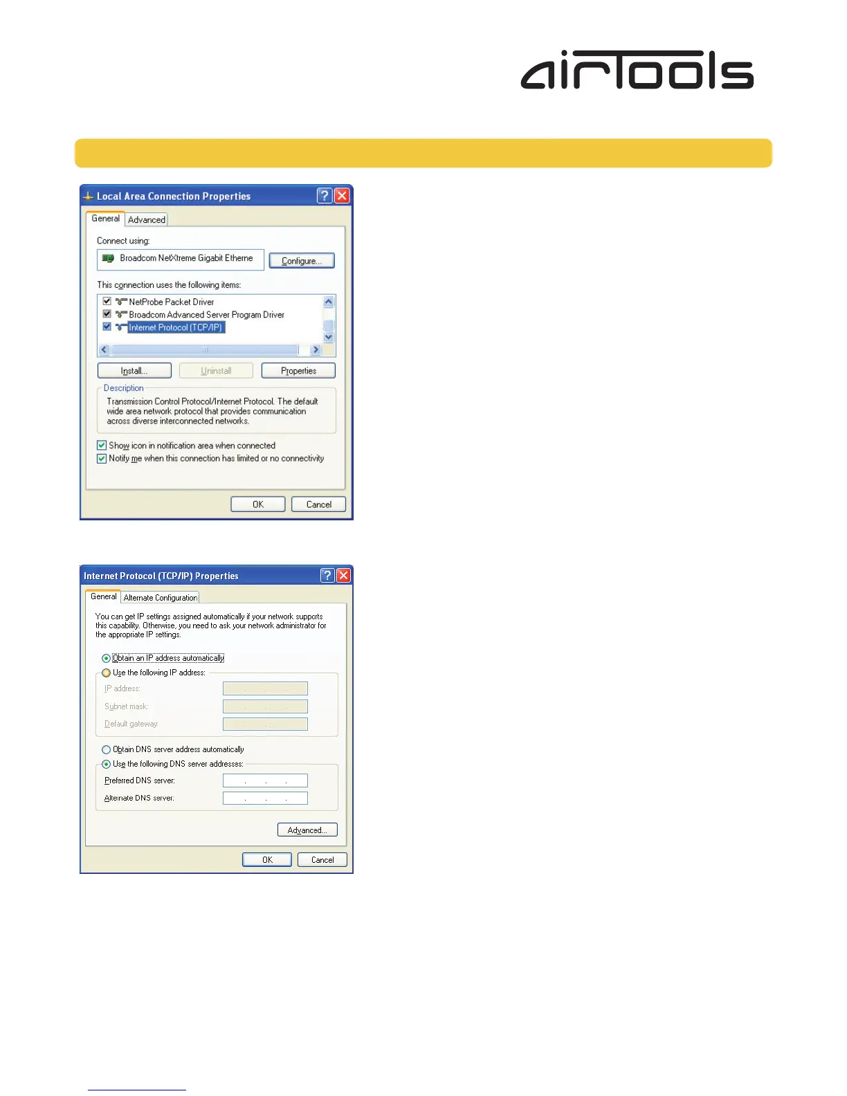 5. On the “General” tab, you may select “Use the following IP address” to enter in the appropriate information. (DNS server is