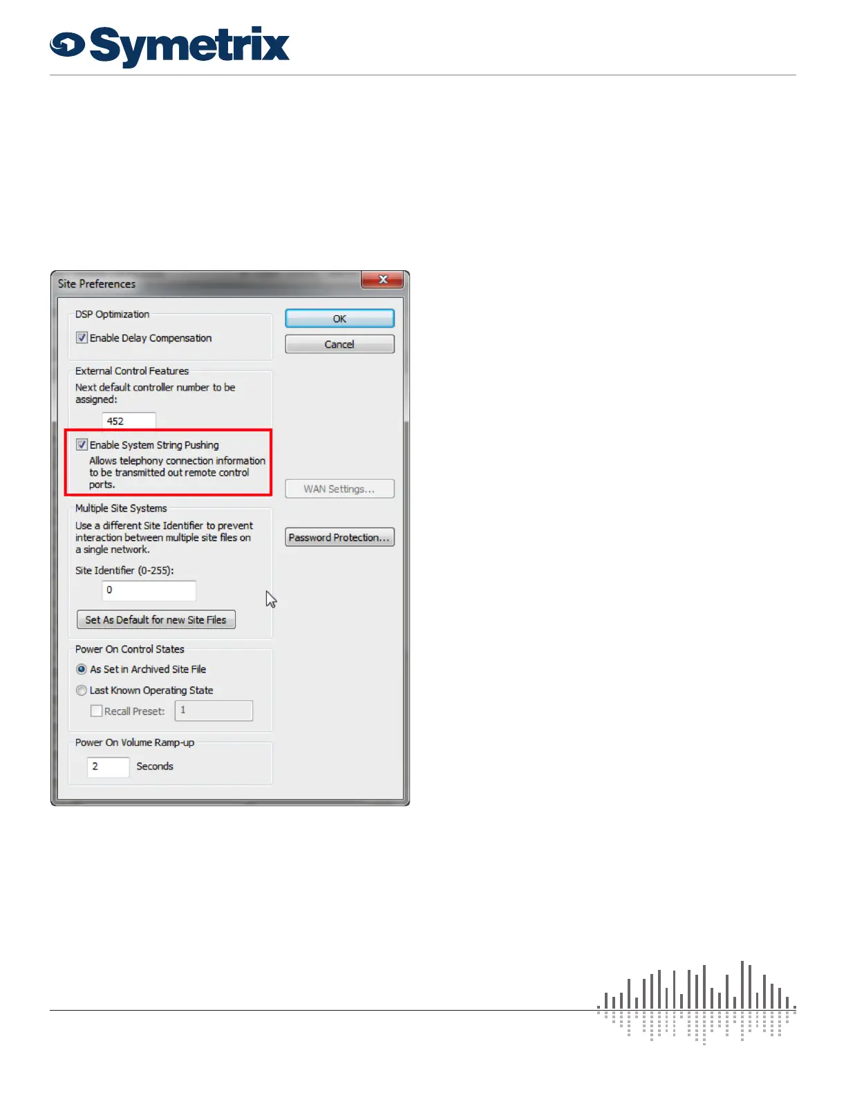 String Pushing” under the Tools->Site Preferences menu and