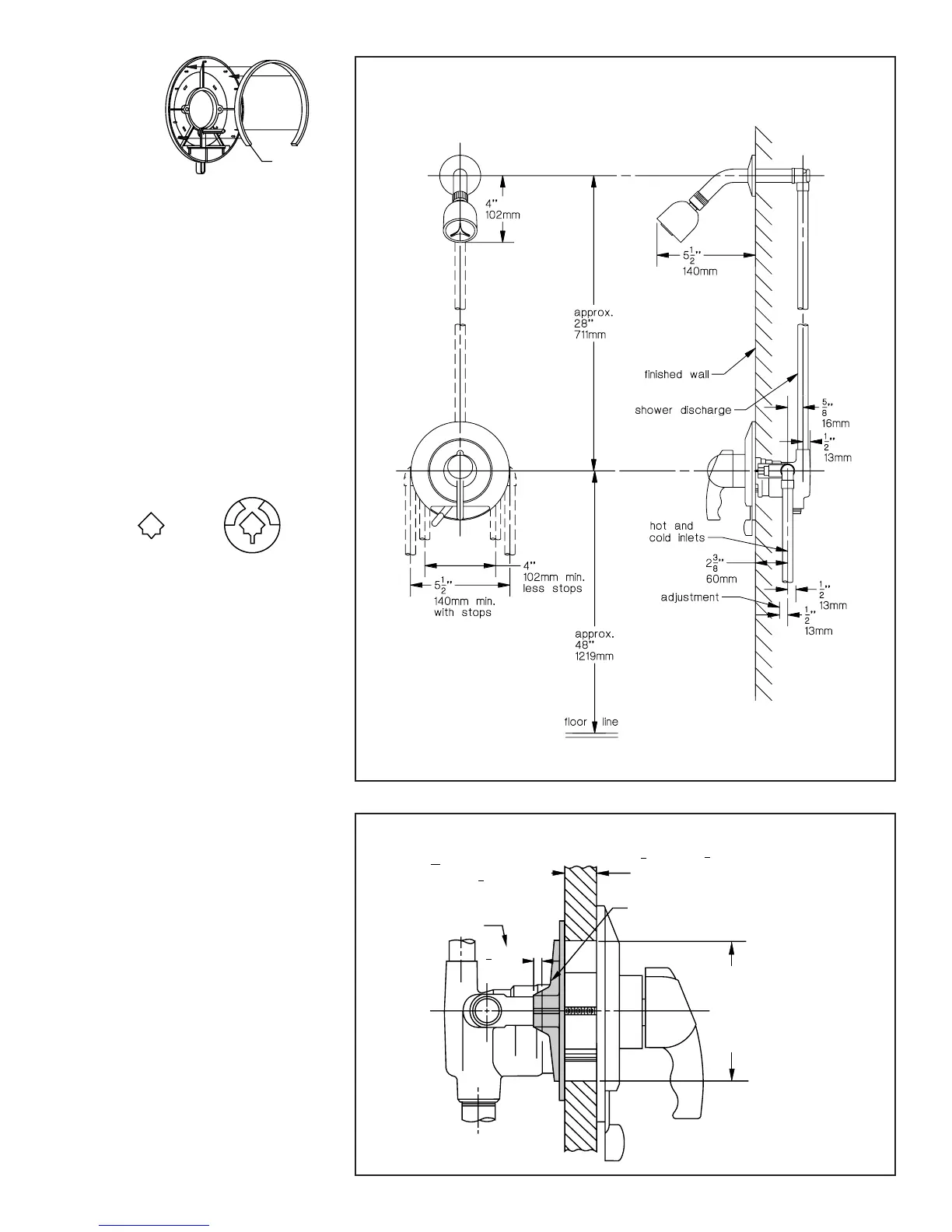 Install shower arm, ange and shower