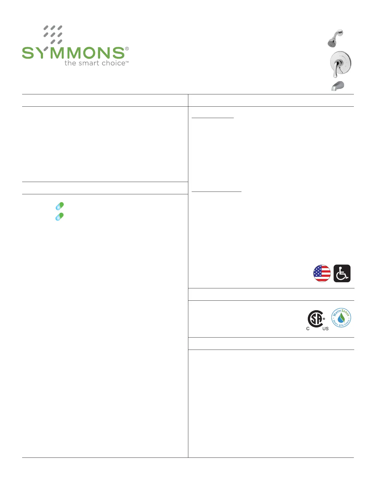 industrielles. Se reporter au site www.symmons.com/