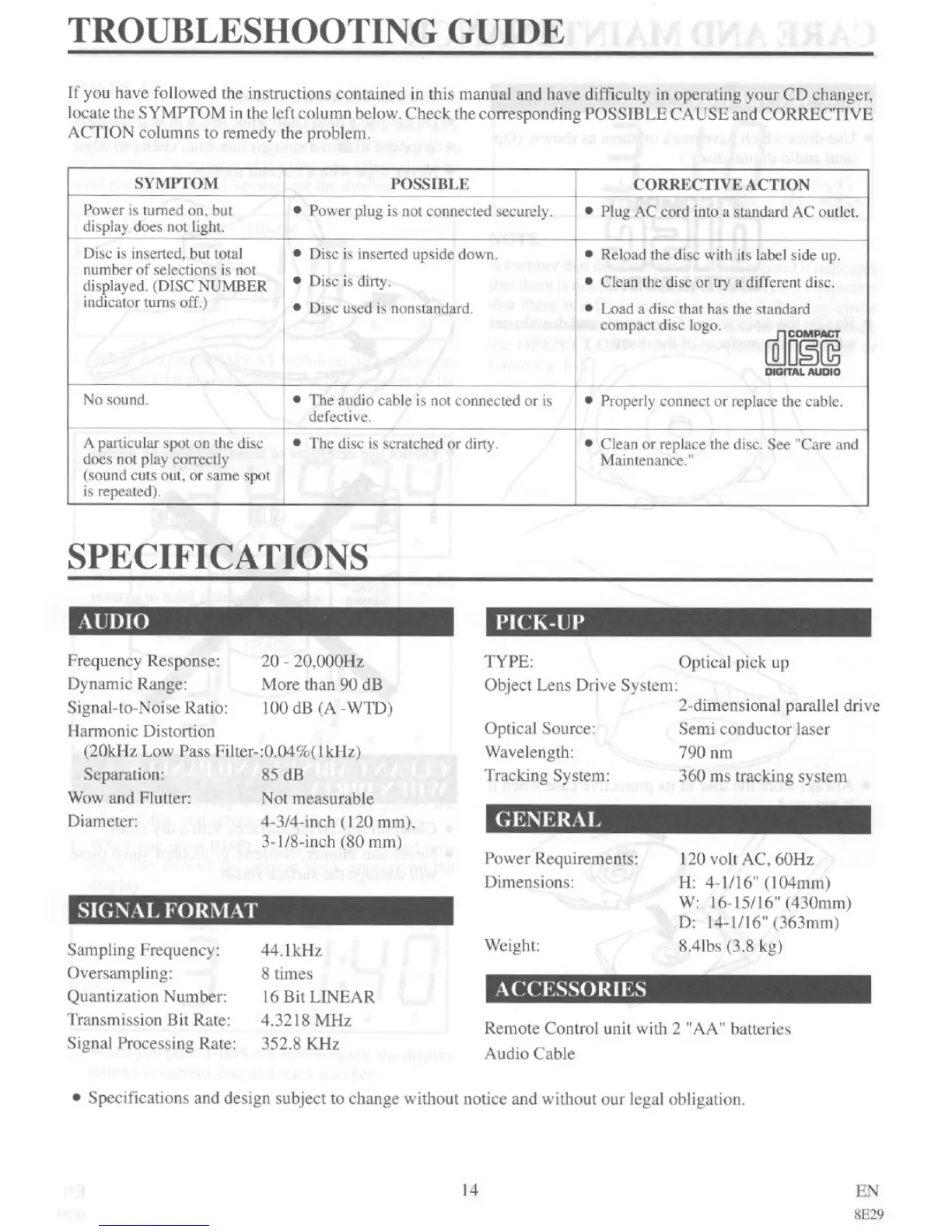 Symphonic CD5800 - Troubleshooting Guide; Array