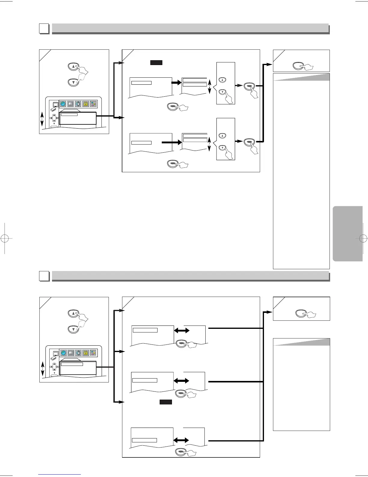 Choose the appropriate audio settings for your equipments. It only affects during the playback of DVD discs. Follow steps 1 to