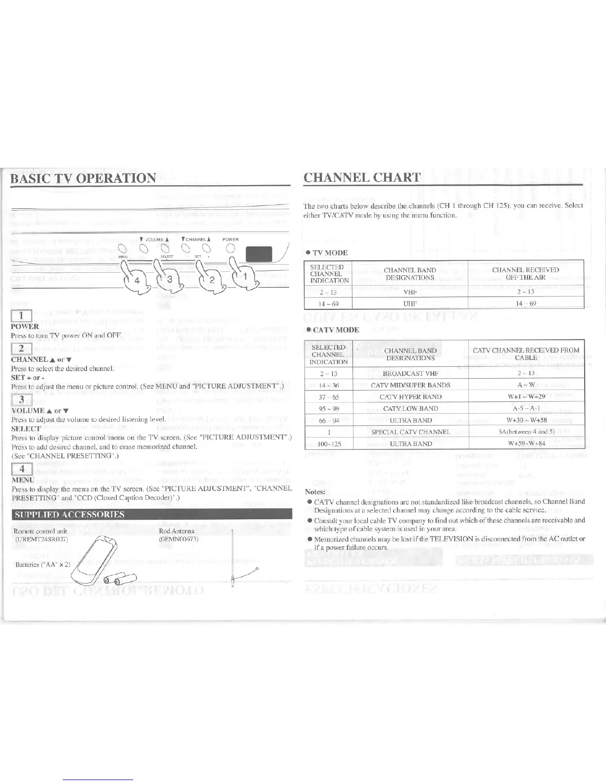 Symphonic ST131E - BASIC TV OPERATION; FRONT PANEL CONTROLS EXPLAINED; CHANNEL CHART AND ACCESSORIES