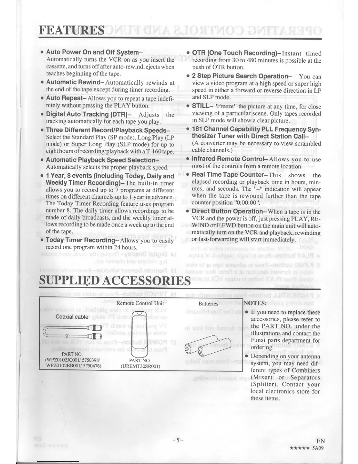 Symphonic SV211E - Features; Supplied Accessories