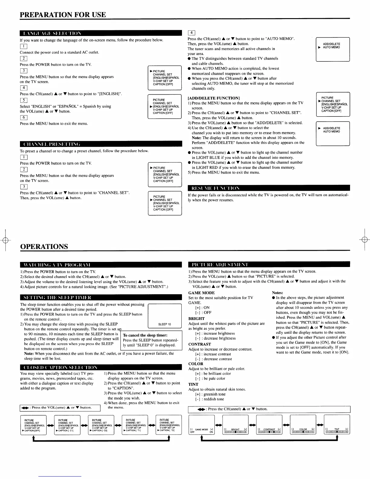 Symphonic WF-13 - Preparation For Use; Language Selection; Channel Presetting; Add;Delete Function