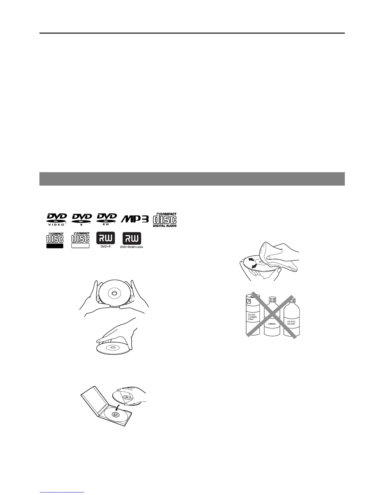 Handle the discs so that fingerprints and dust do