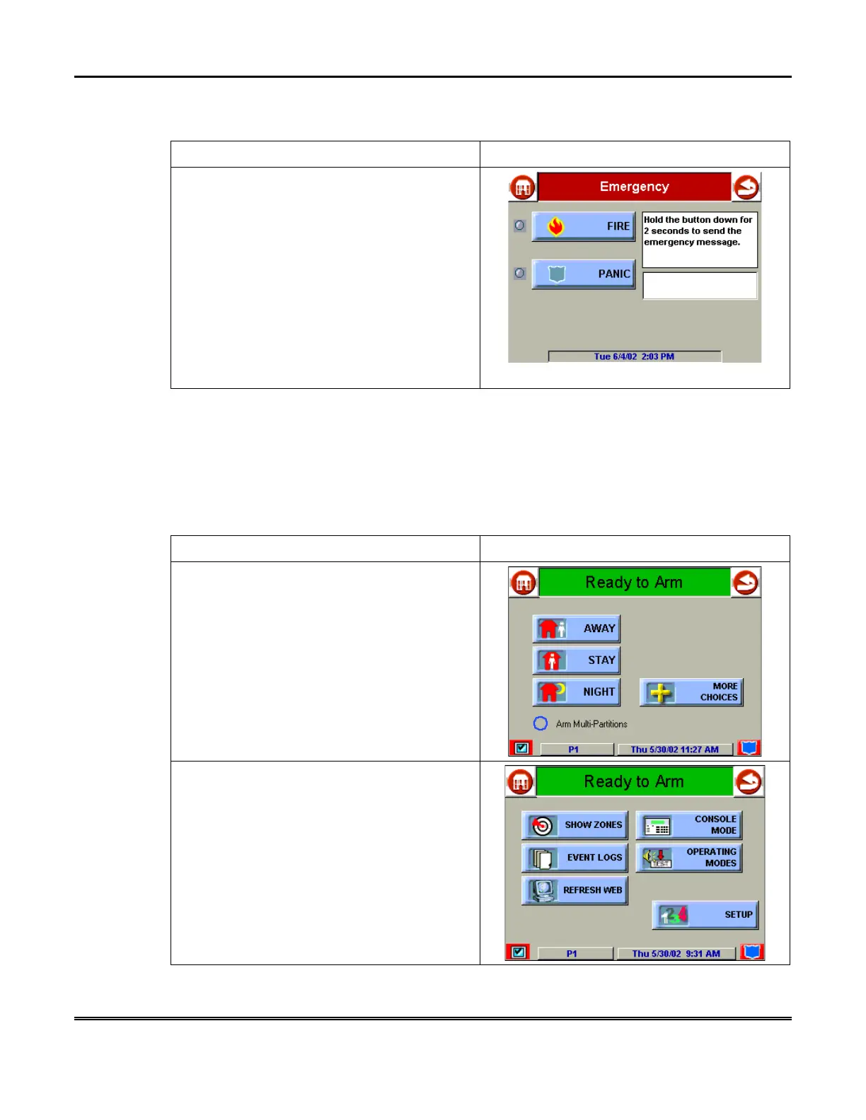 button. The "Arming" screen is