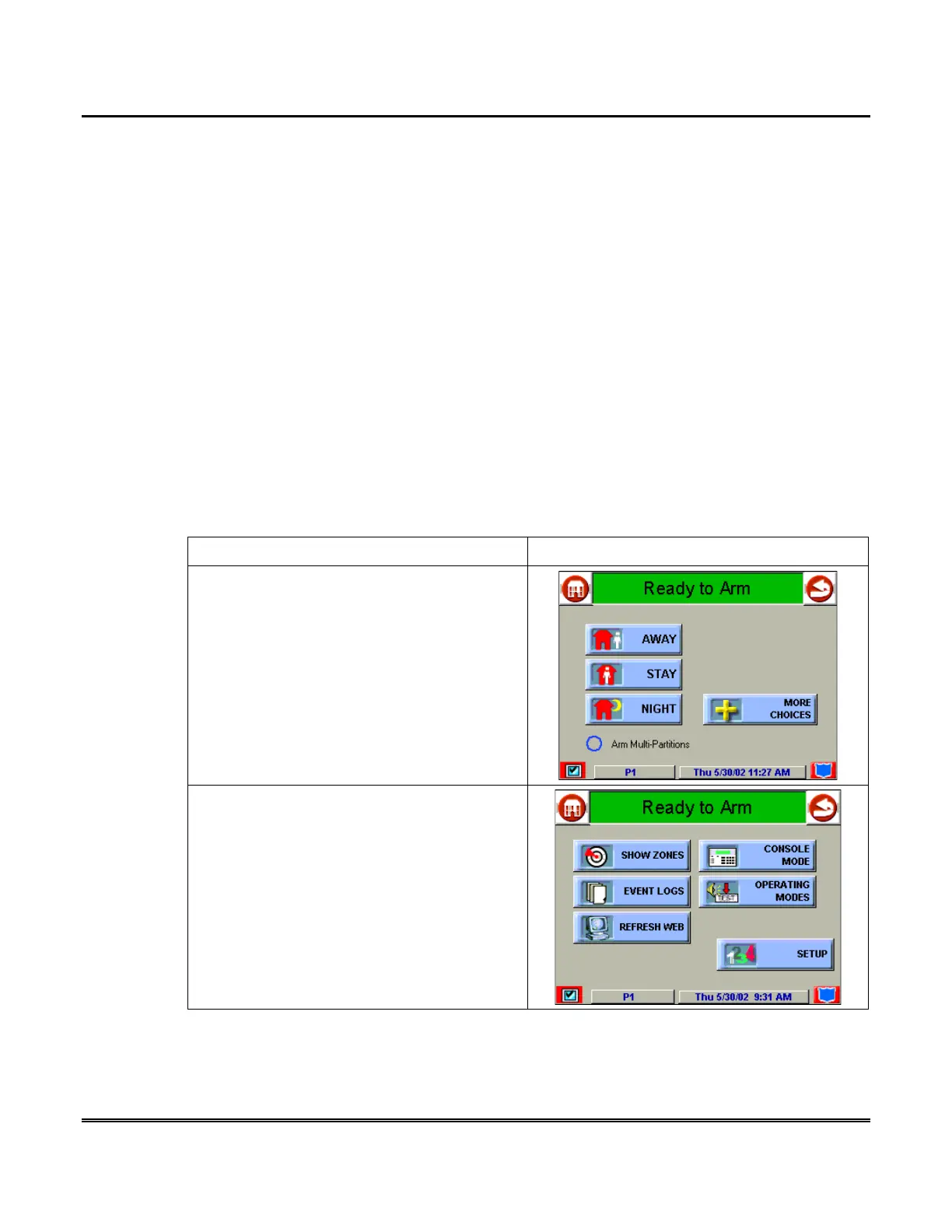 button. The "Arming" screen is