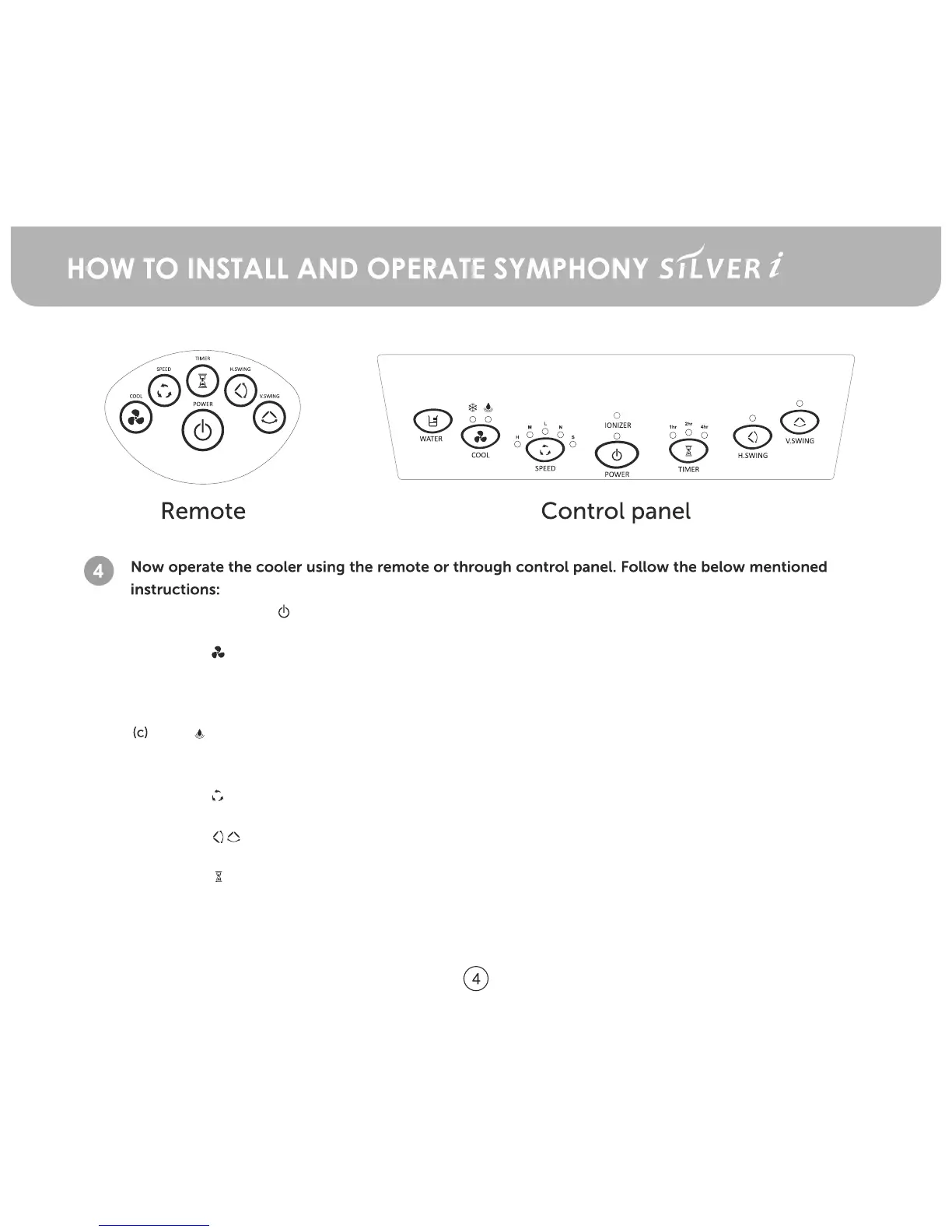 (a) POWER (ON/OFF) [ ] : Press the button to switch ON/OFF the cooler. Icon will glow with blue colour at ON