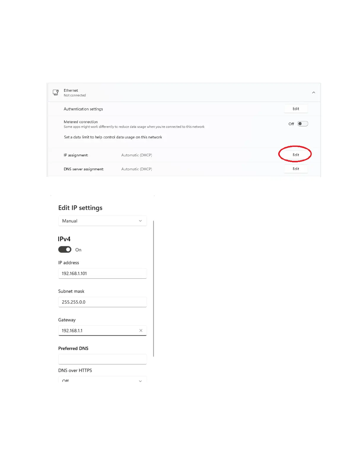 one you are directly connecting to your device, and click on the “Edit” button for IP Assignment (picture