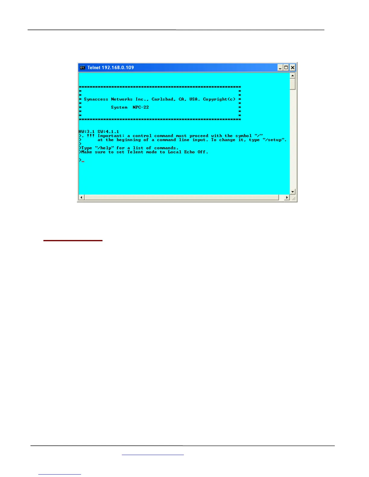 Figure 8 - Telnet Session Startup screen