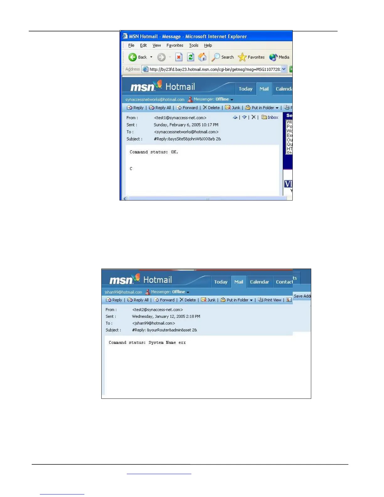 power outlet port, or if there is a command syntax error. If this happens, a reply email is sent