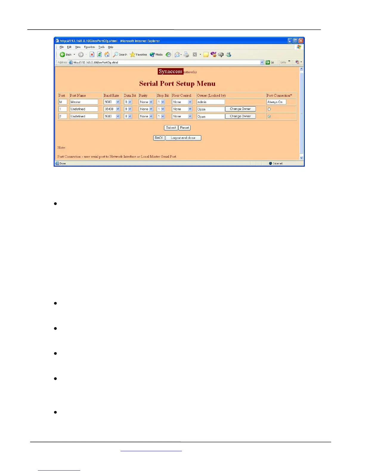 Figure 25 - Serial Port Setup Menu (Web Page)