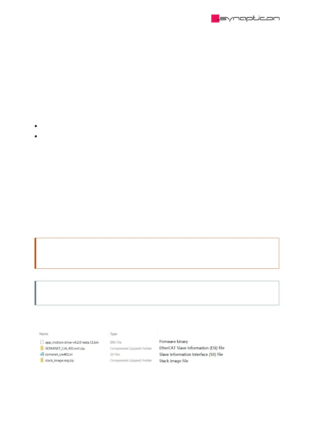 installed firmware and the firmware to install are checked by the Synapticon technical support team.