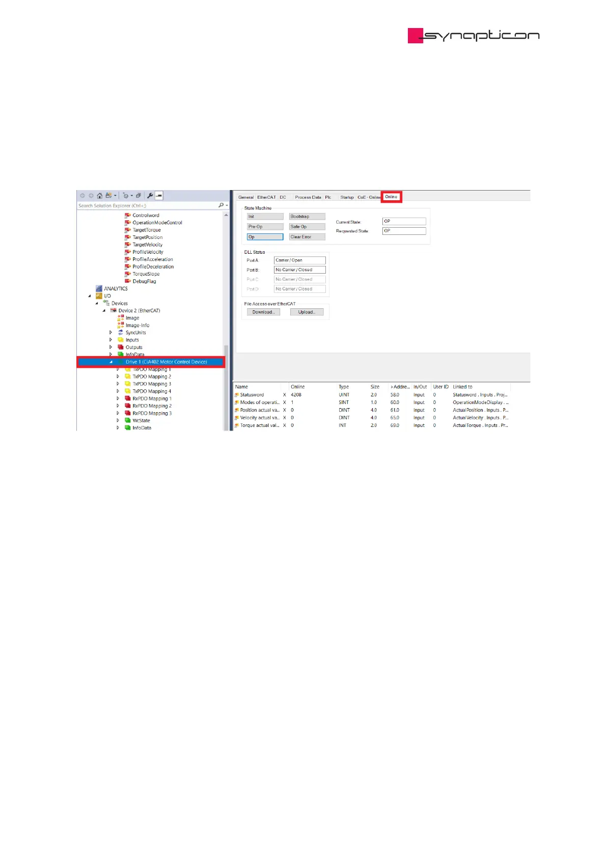 operations. Click the tab “Online” for state machine operations and FOE access.