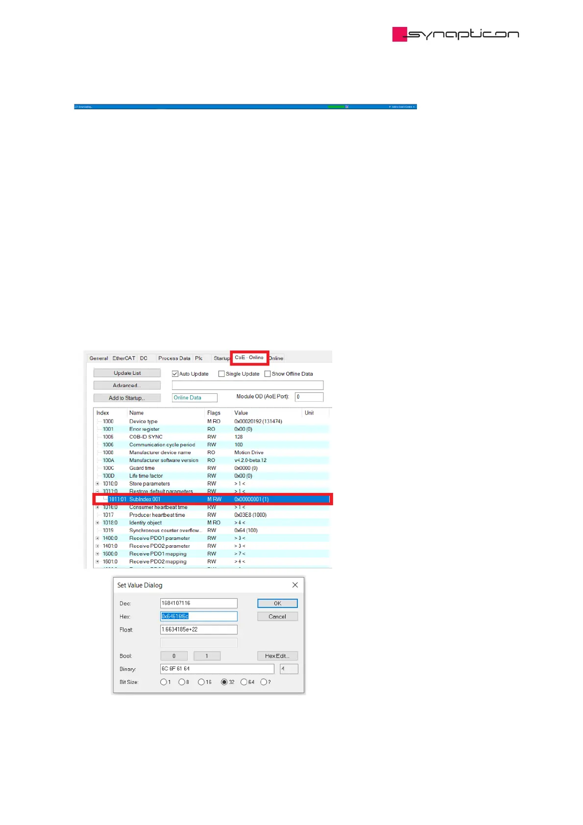 allows loading from the permanent storage through CANopen over EtherCAT (CoE).