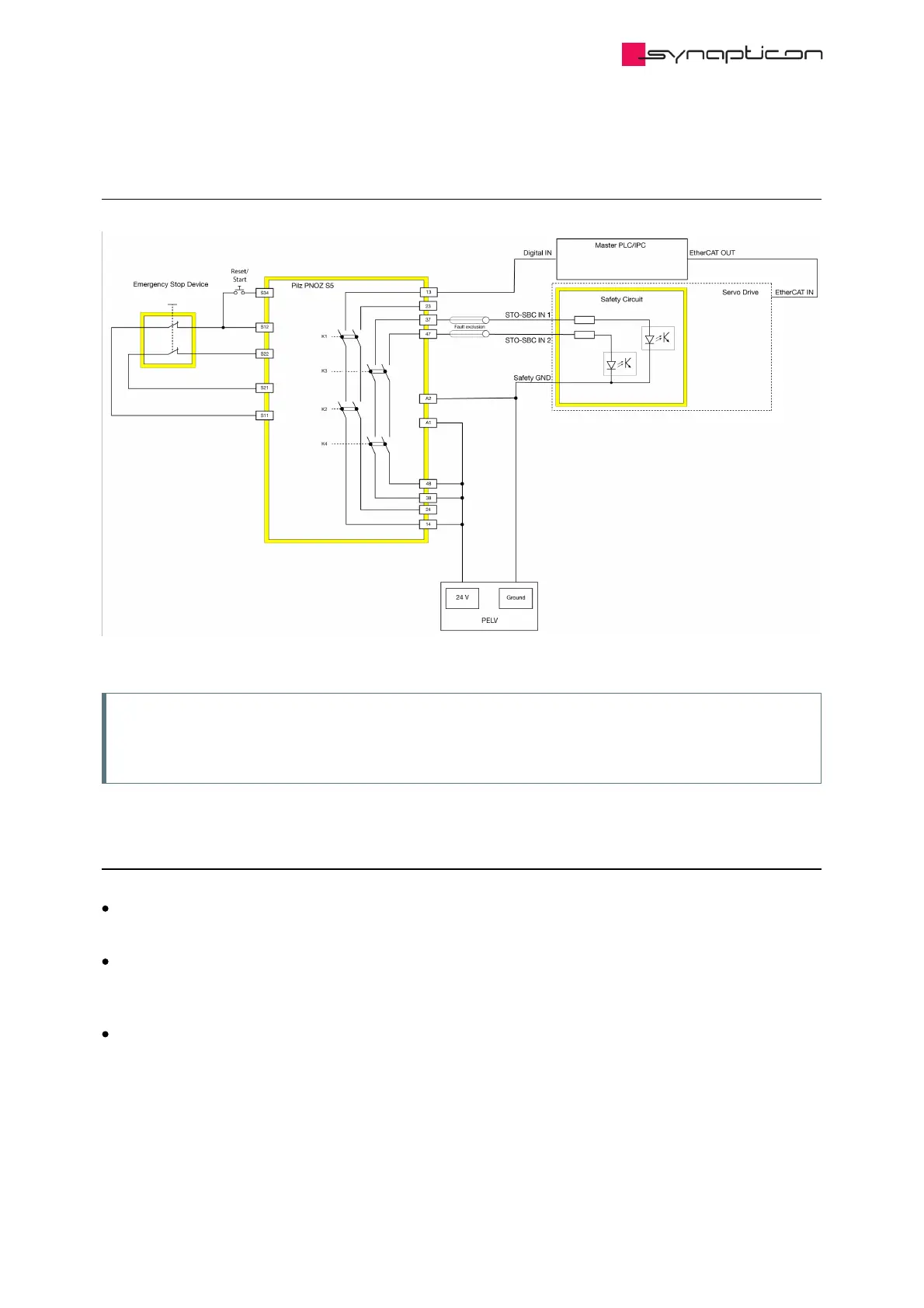 For a PLe, SIL 3 system please regard the requirements for fault exclusion between the STO-SBC 1 and