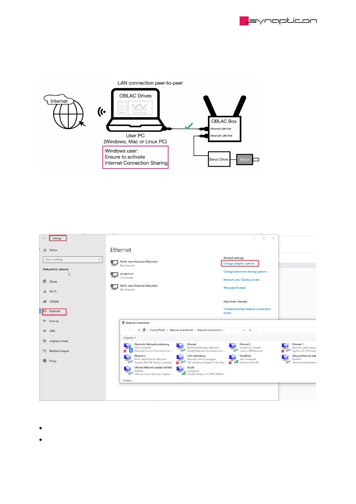 patch cable between your PC board and the LAN port of the OBLAC box. But in addition ICS (Internet