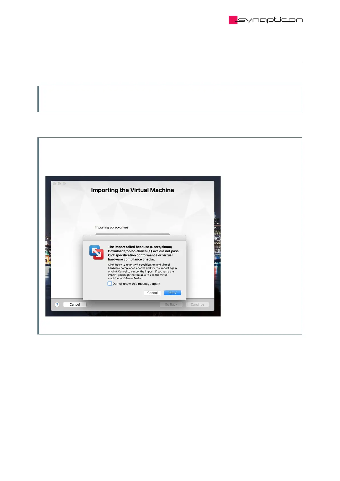 3. Open the OBLAC Drives image (OVA file) in VMware Fusion