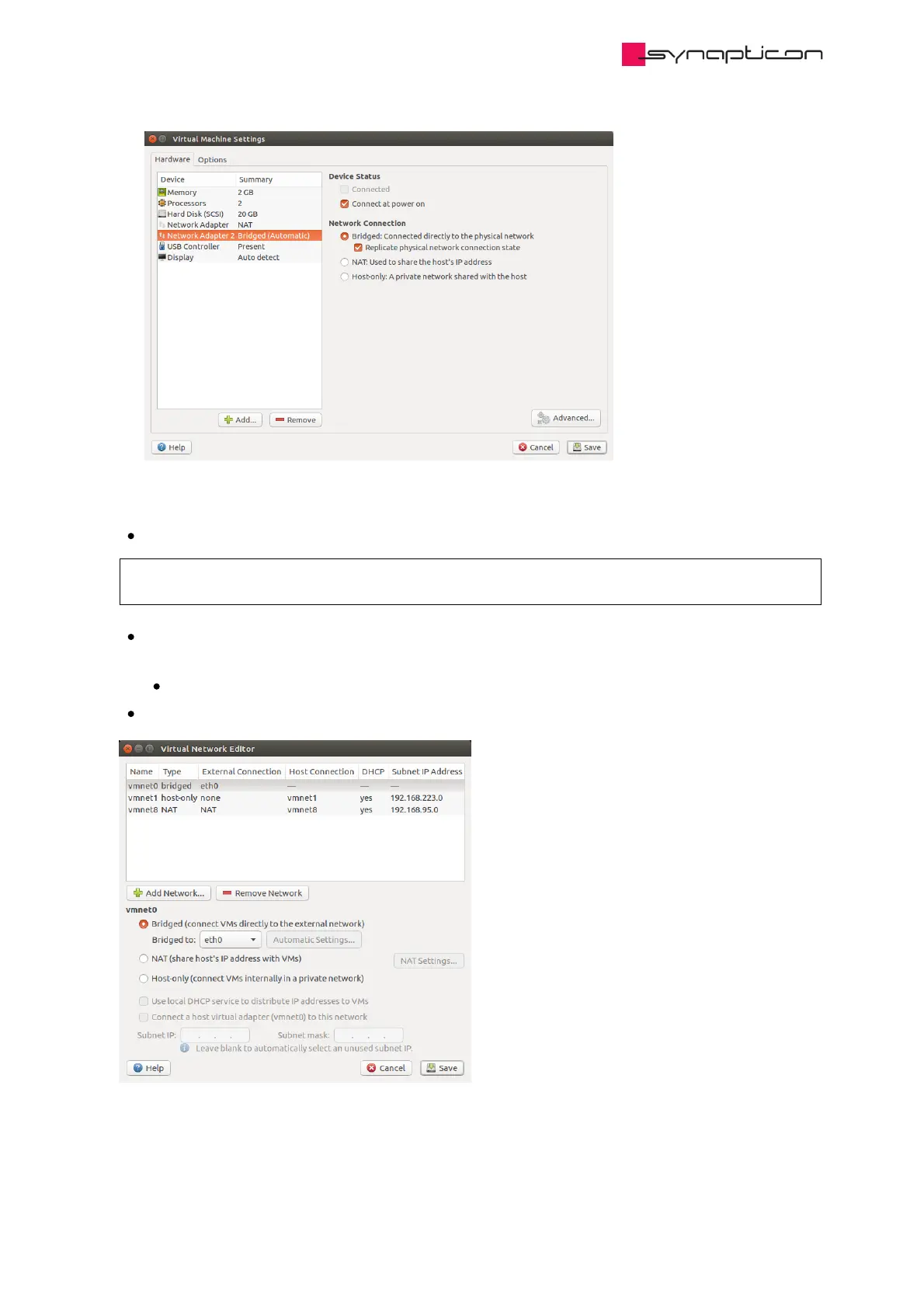 Select the bridged network adapter and bridge it to the system network adapter to which the slaves