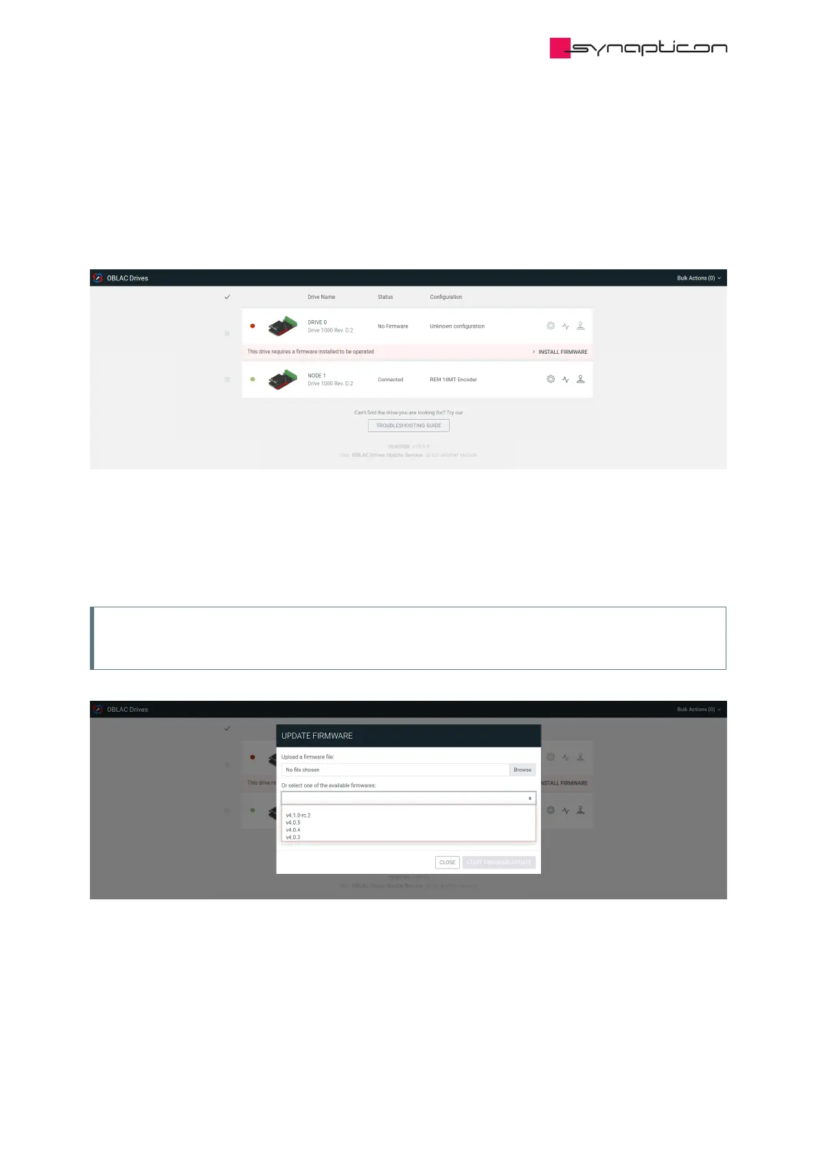 Please make sure to select a firmware that fits your version of the Drive module.