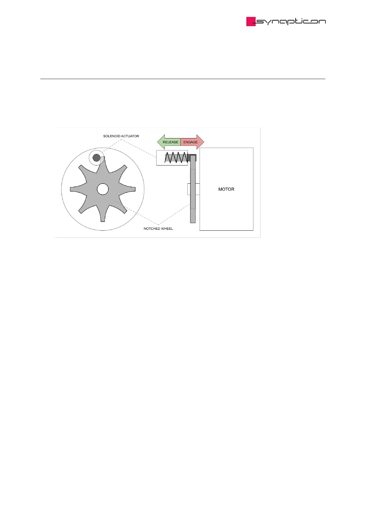 of a solenoid linear actuator fixed to robot body and a notched wheel fixed to the rotating motor shaft.