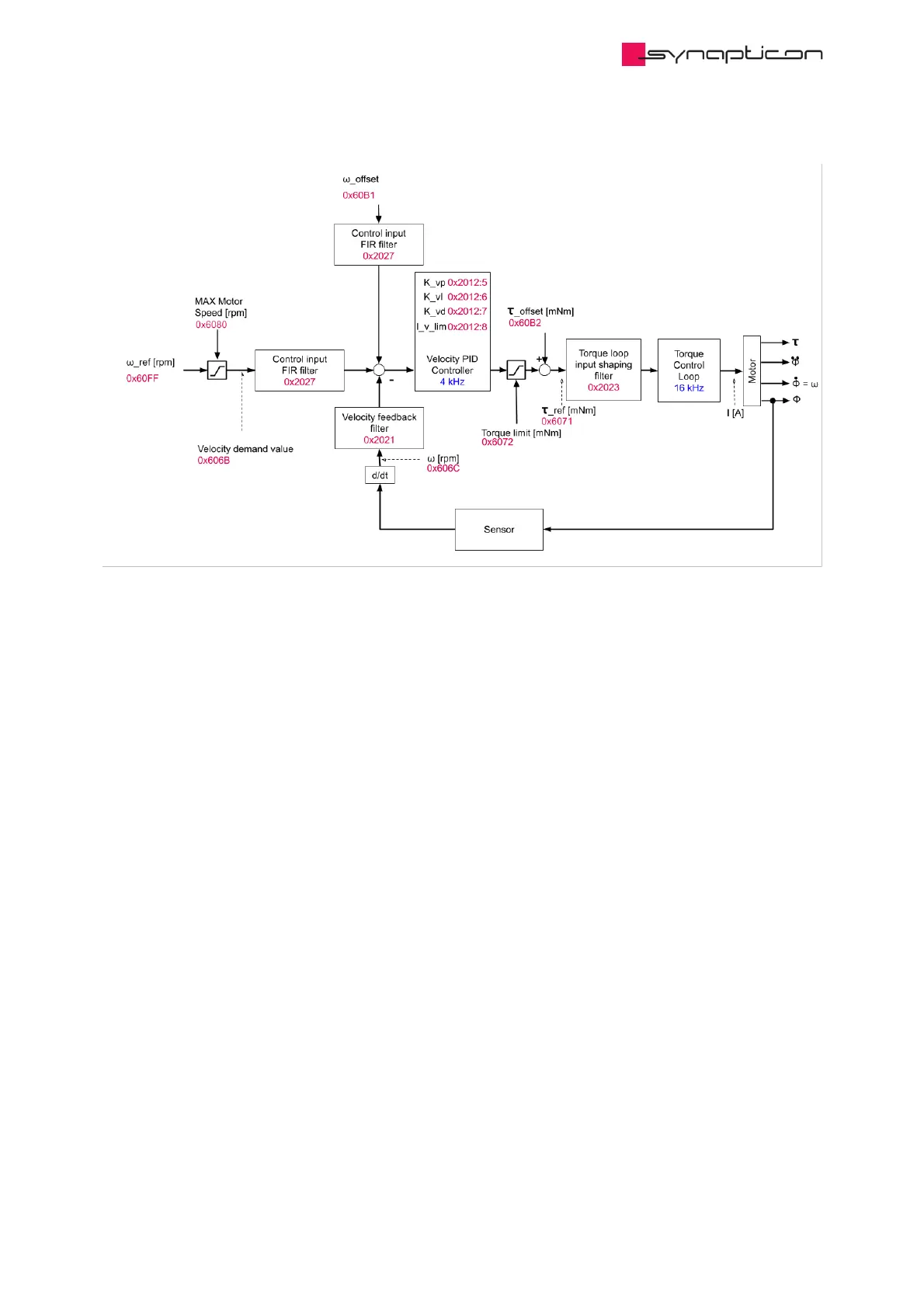 the controller gains for the velocity controller described here (objects 0x2011:1 … 0x2011:4) and the velocity