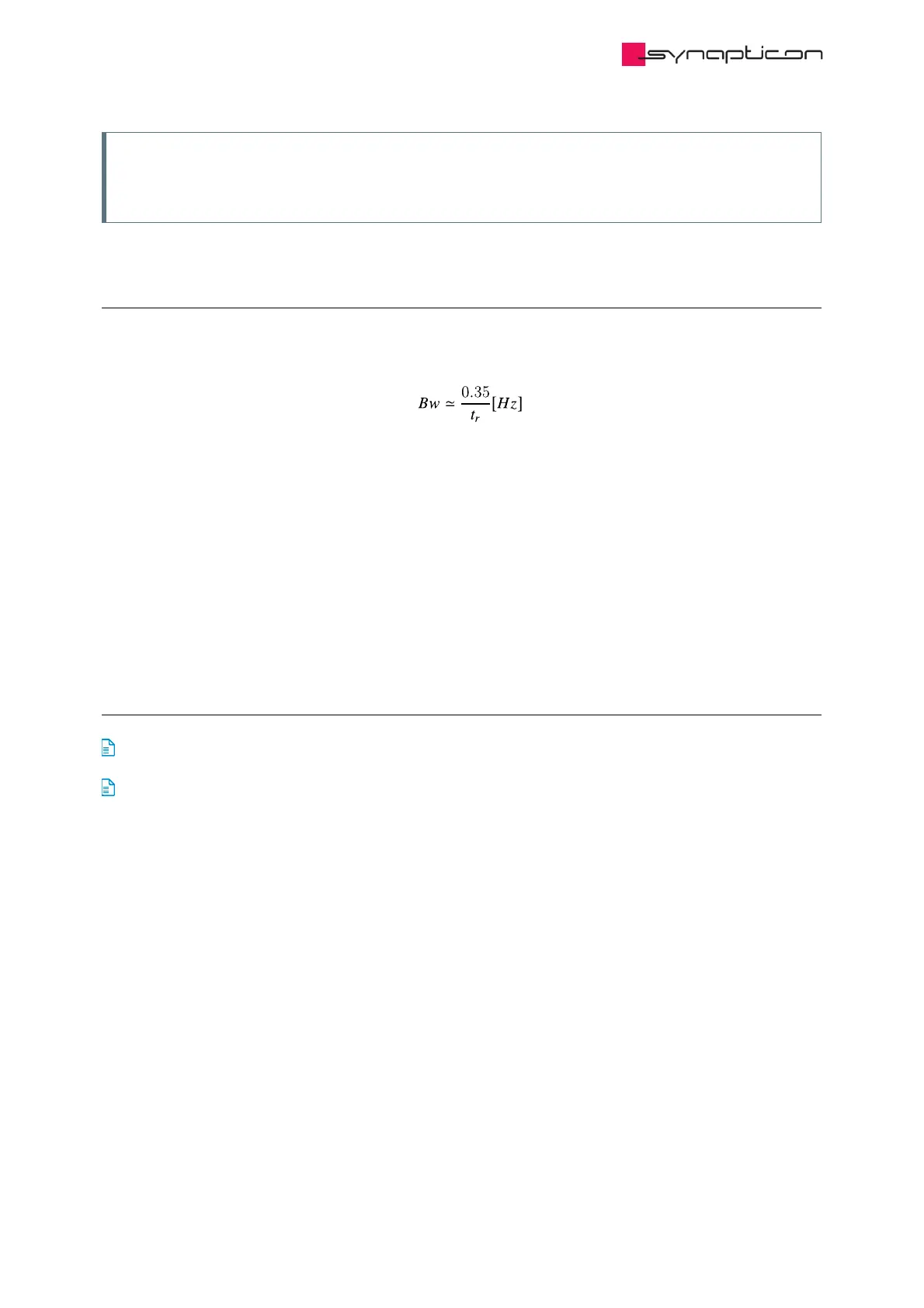 reference profile specifications or roughly estimated from the actual rise time during a step response test: