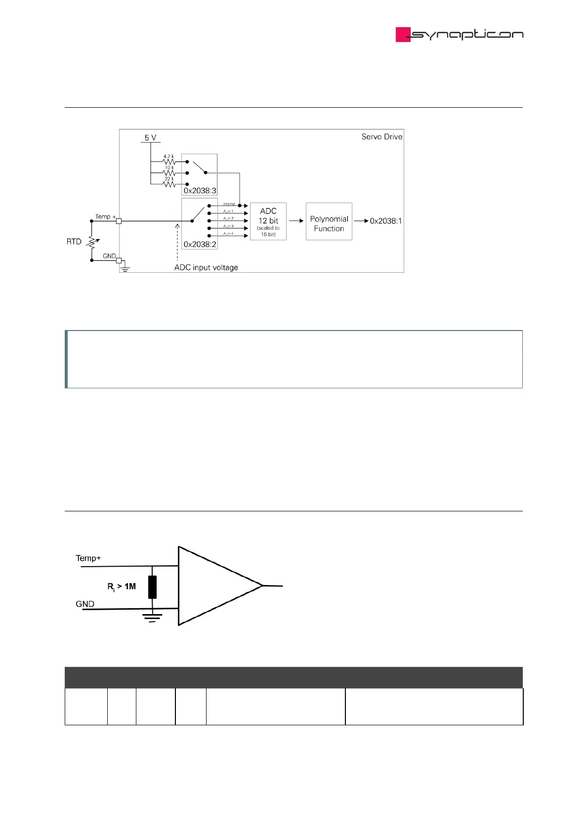 The measured analog value can be calculated into a corresponding temperature by the drive itself. Details