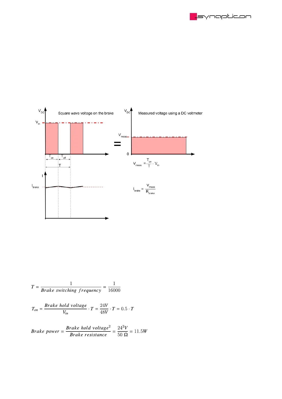 The brake voltage is a square wave signal 16 kHz, 32 kHz or 64 kHz (configurable in subitem 2004:11). A PWM