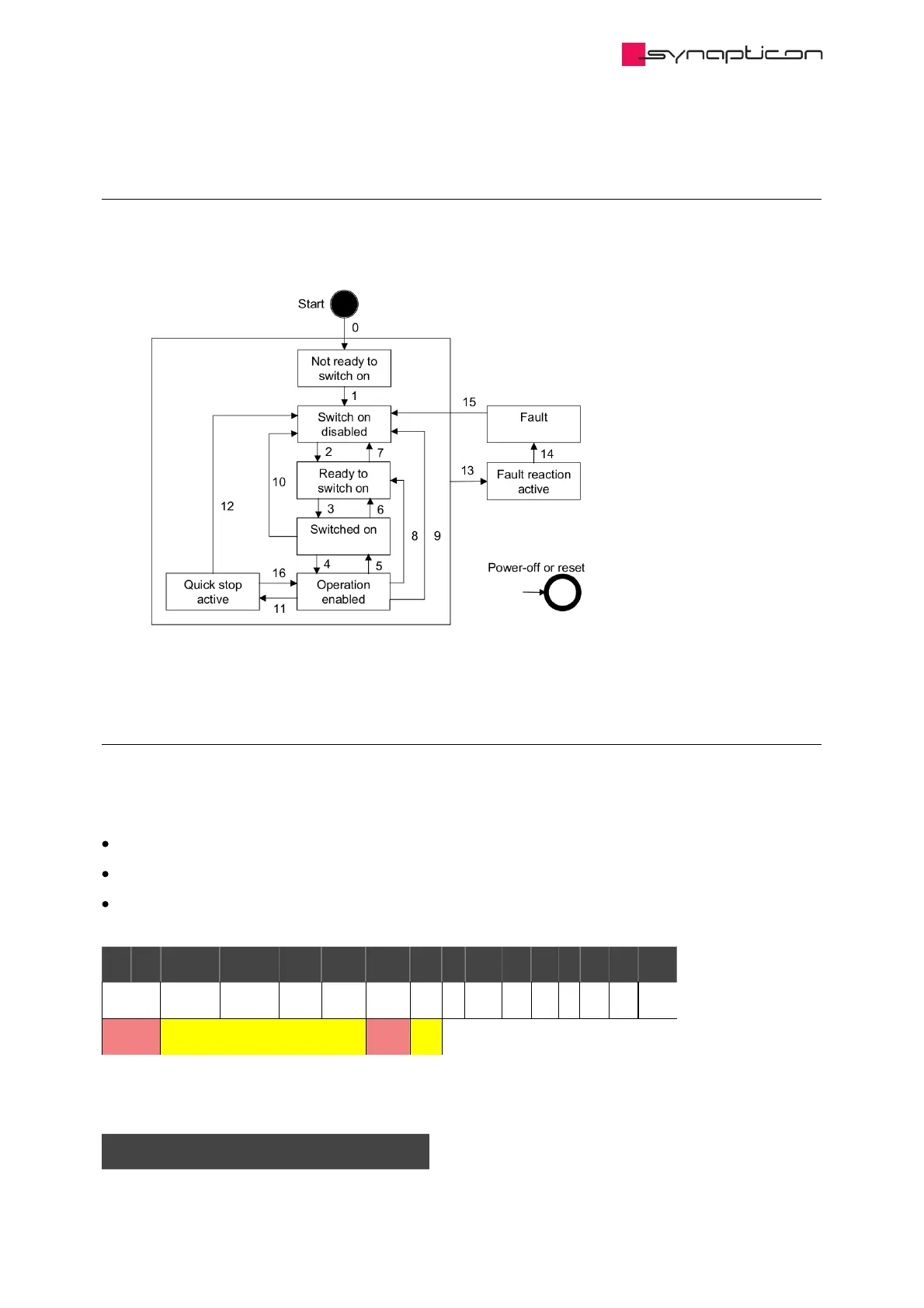 The yellow marked bits have a specific functions which depends on the mode the drive is currently in. See