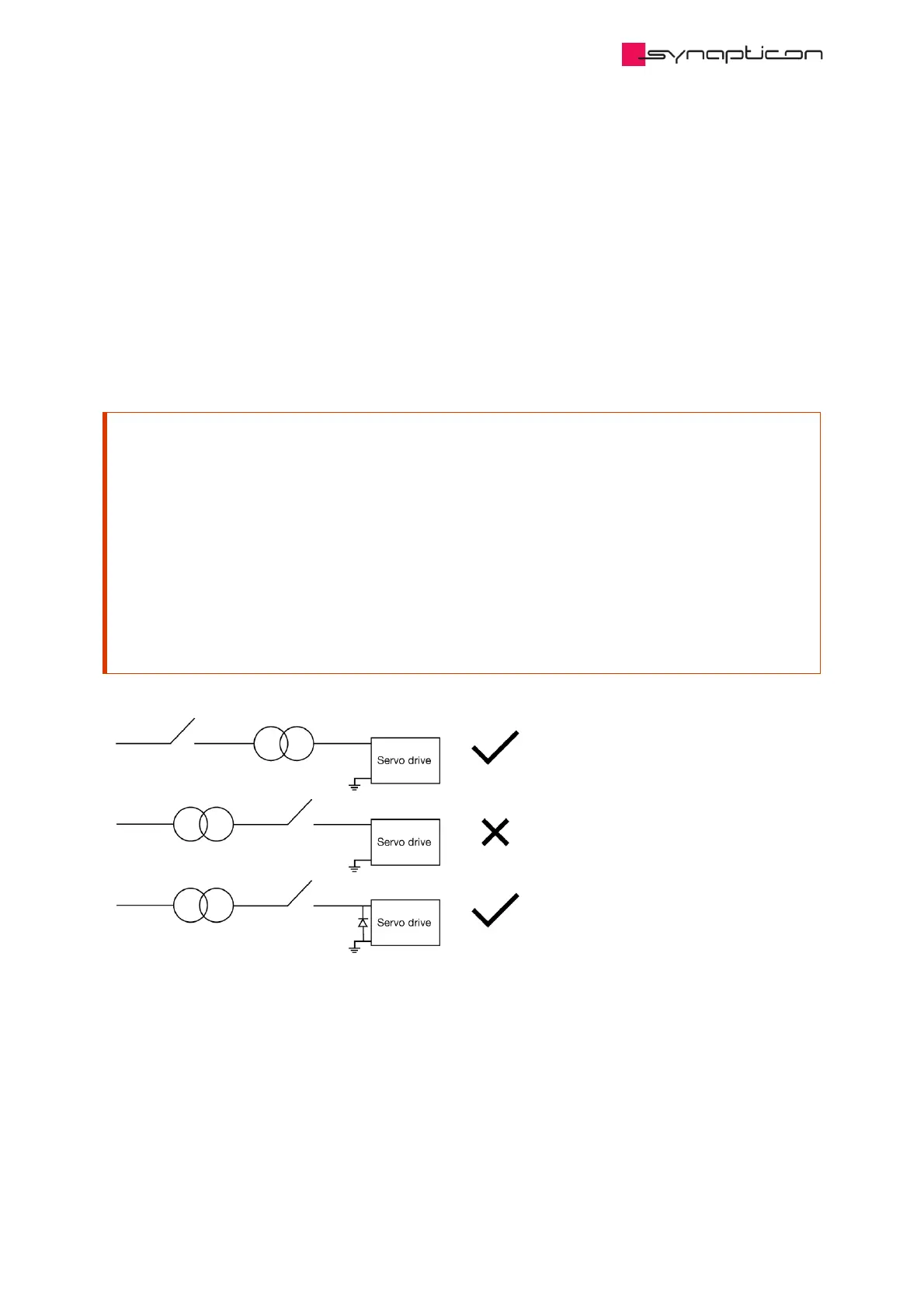 In case you are running several servo drives behind a contactor, please use an uni-directional TVS diode