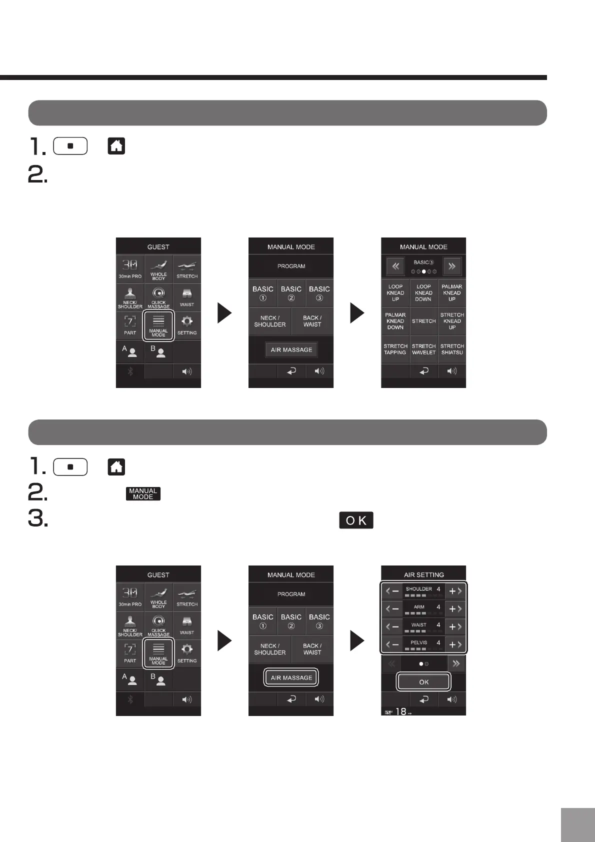 Appuyez sur , et pressez "MASSAGE PAR AIR".