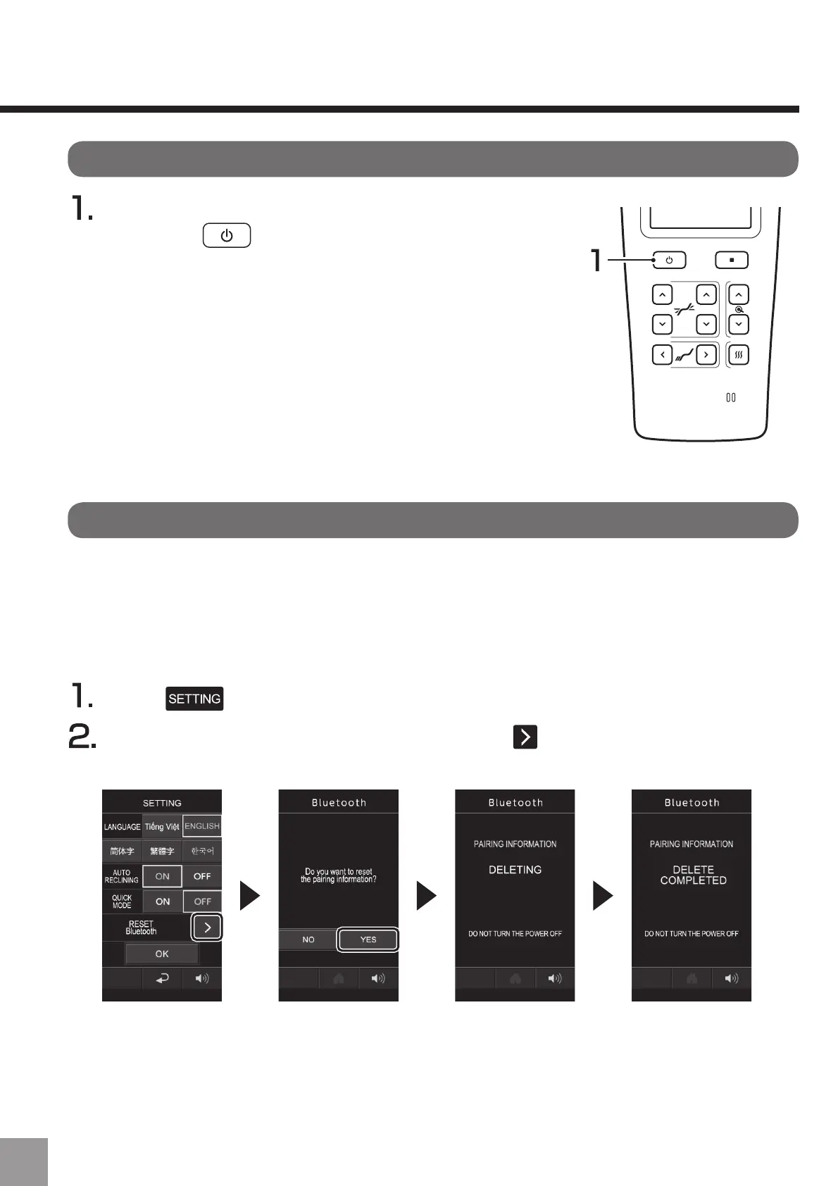 • Après la mise sous tension, le fauteuil de massage essaie de se connecter selon