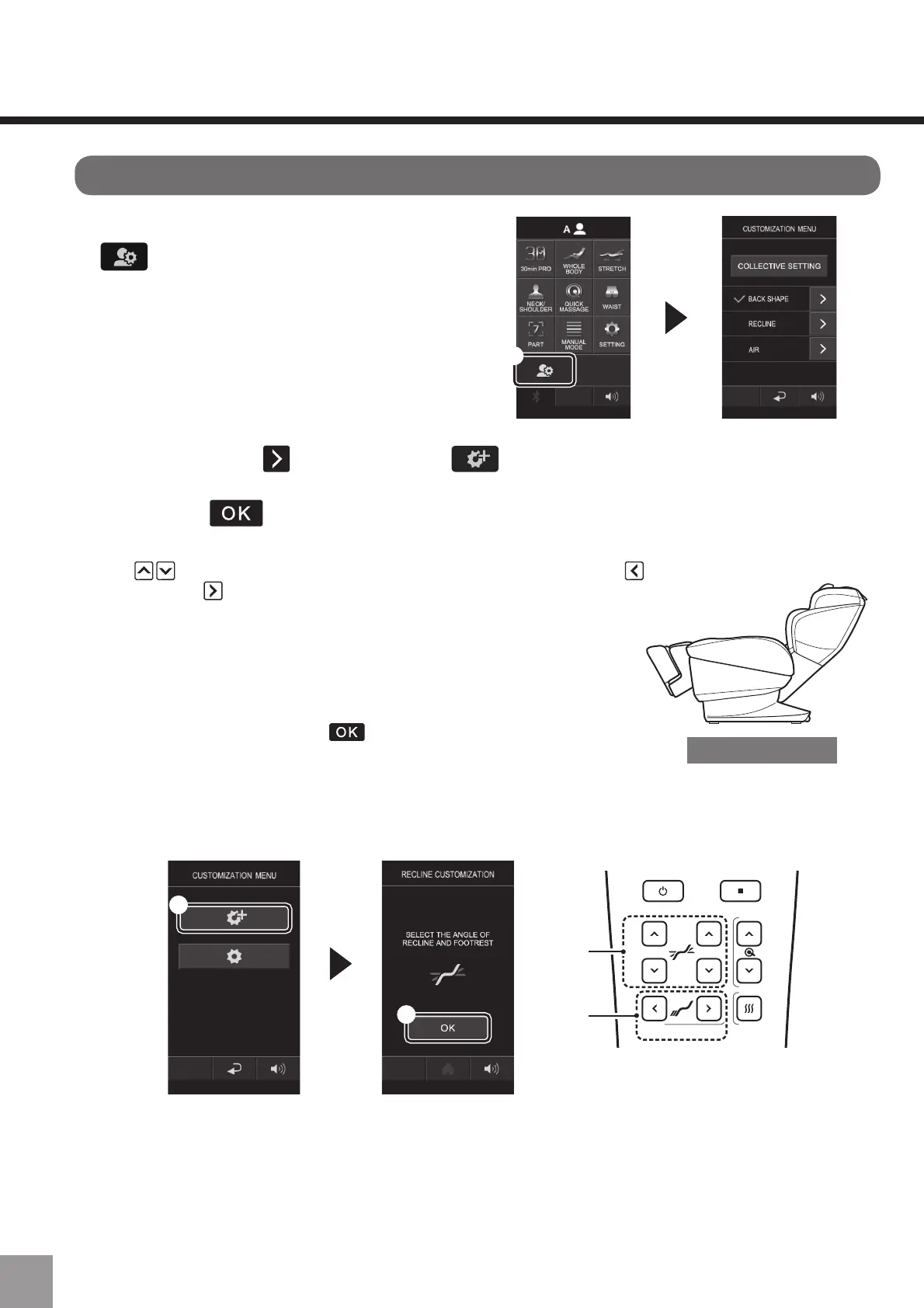 • L'angle du dossier et l'angle des jambes peuvent être réglés avec "Inclinai-