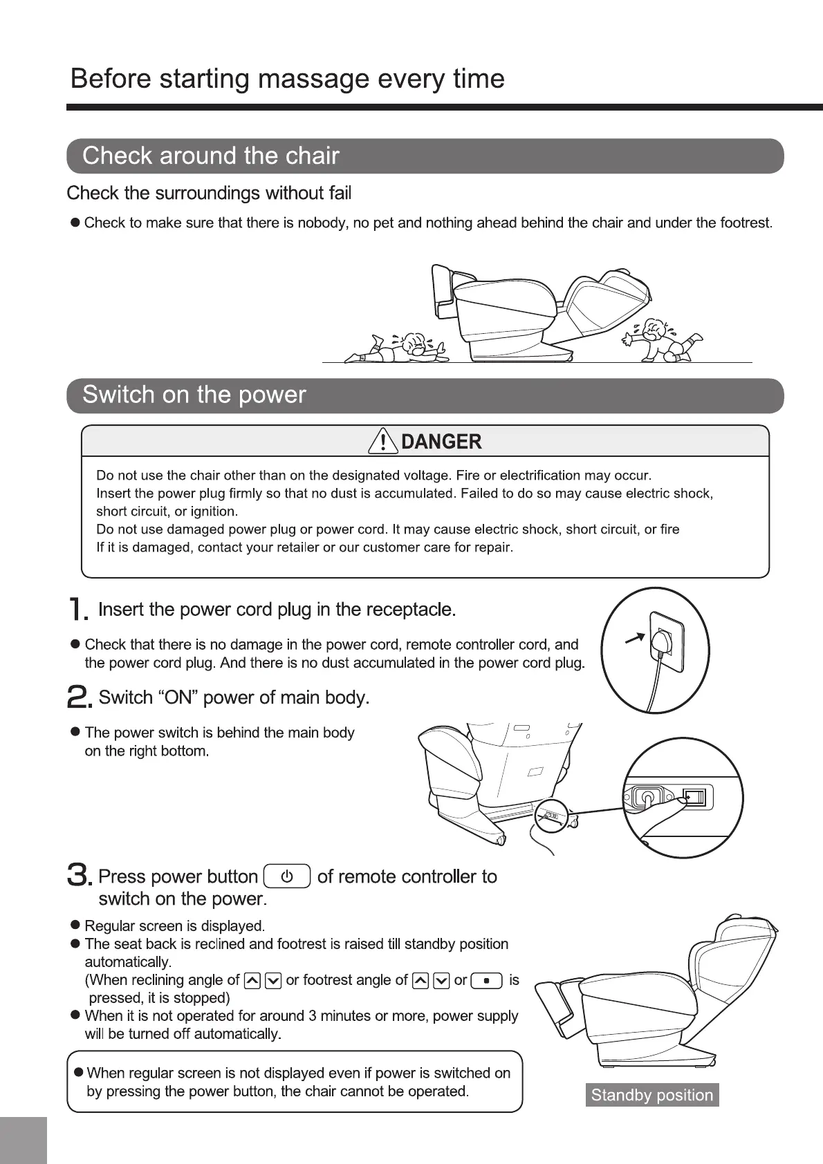Synca JP-3000 - Massage Operations and Modes; Initial Massage Setup