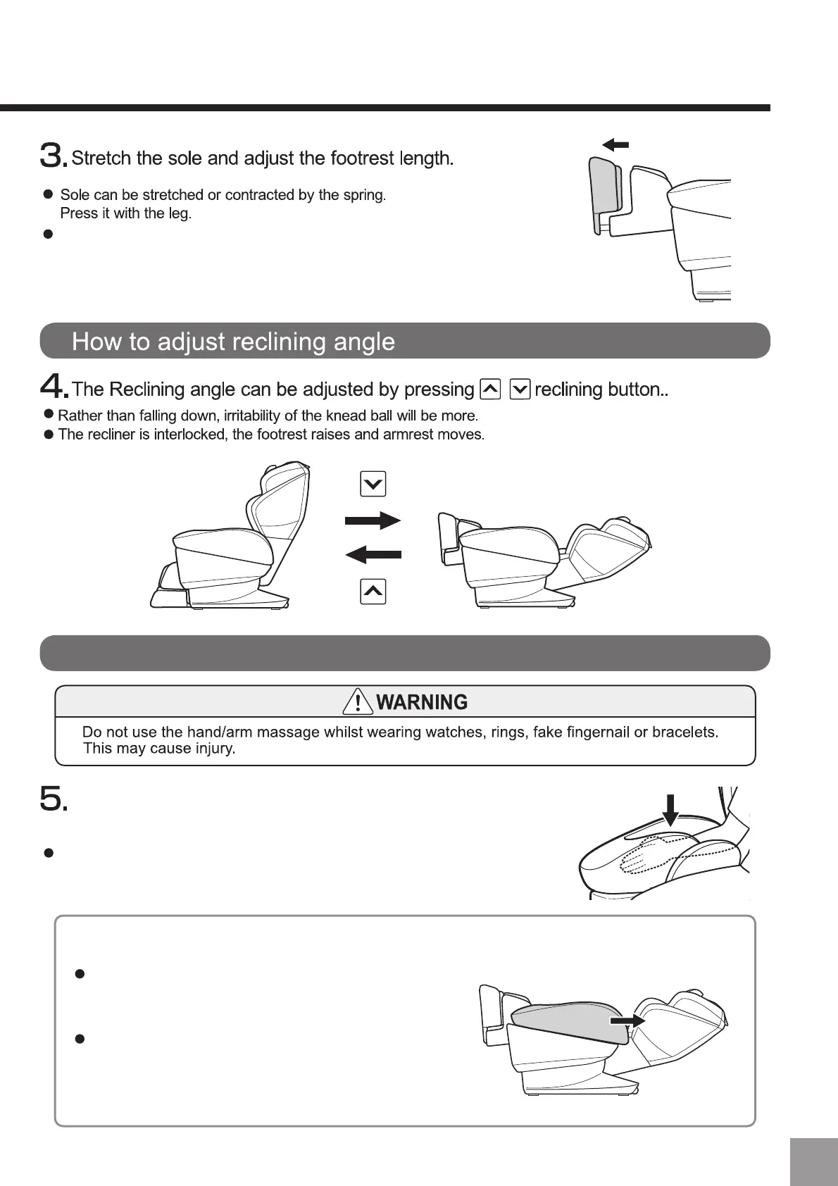 to the soles of the feet. If the footrest is moved back to position when