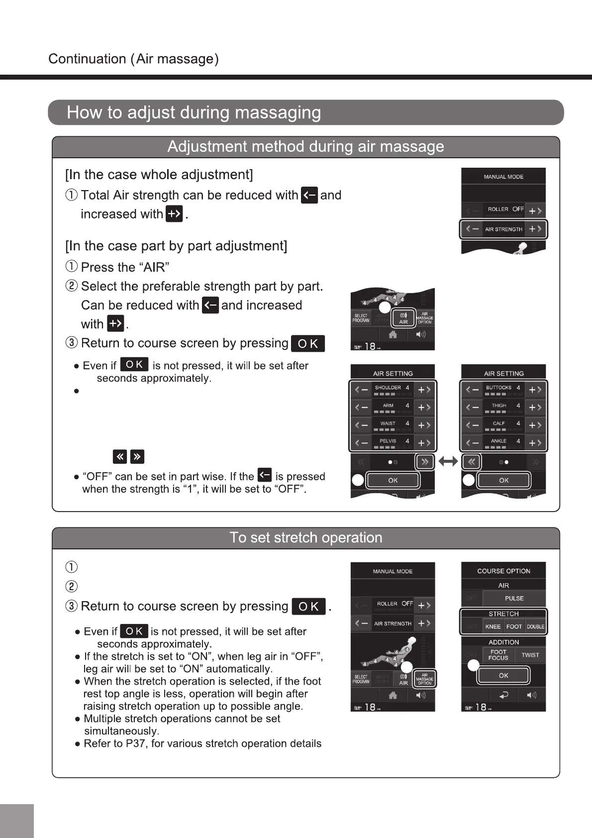 Press “AIR MASSAGE OPTION