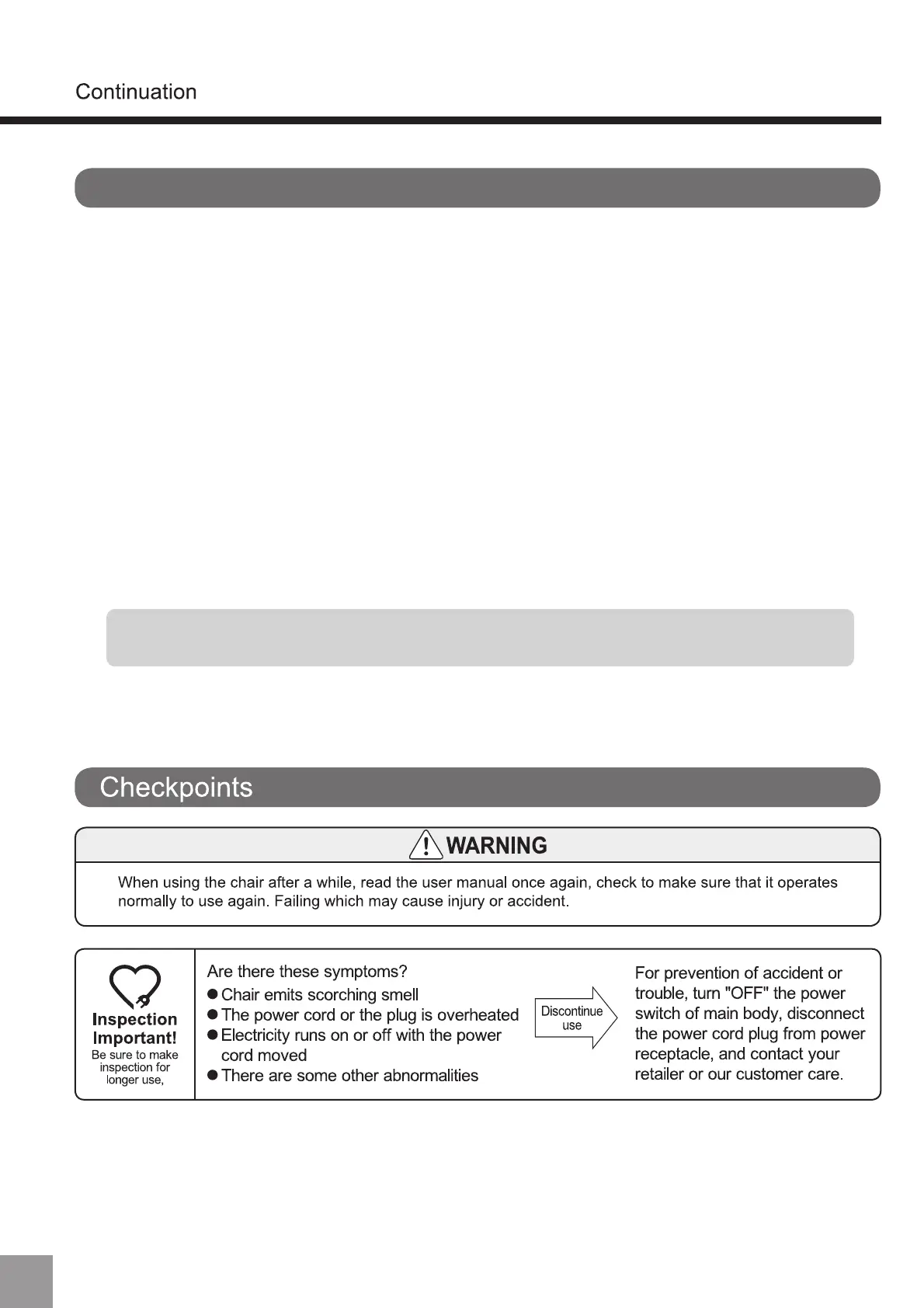 ・ Keep the TV, radio and devices with built-in tuners away from the massage chair. These devices may affect