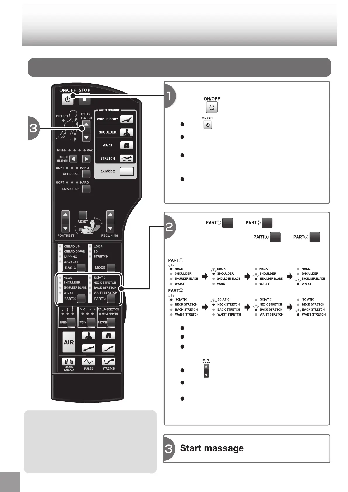 Refer to the page 38 [List of massage program] for the