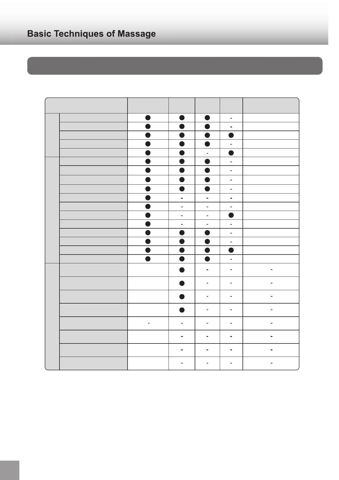 Synca Kurodo - Basic Techniques of Massage; Mecha Massage Function List Table
