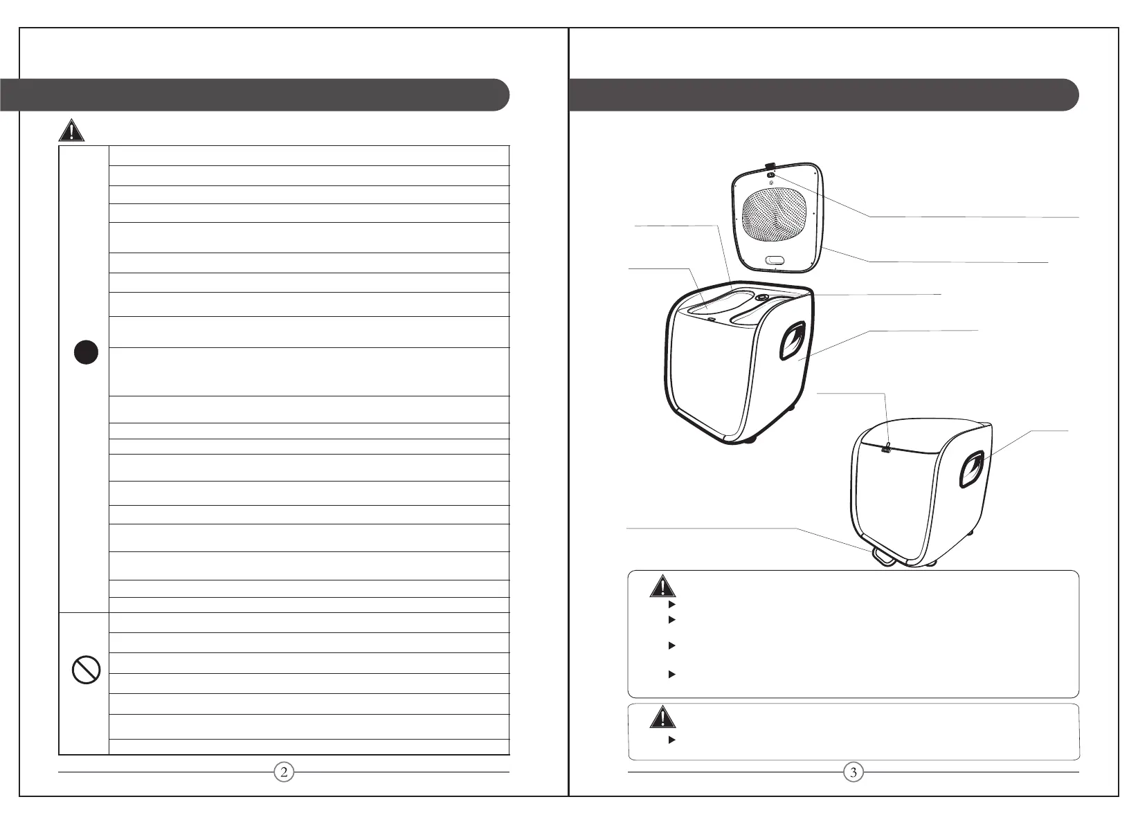 Do not stand or put heavy objects on the unit to avoid malfunction or injury.