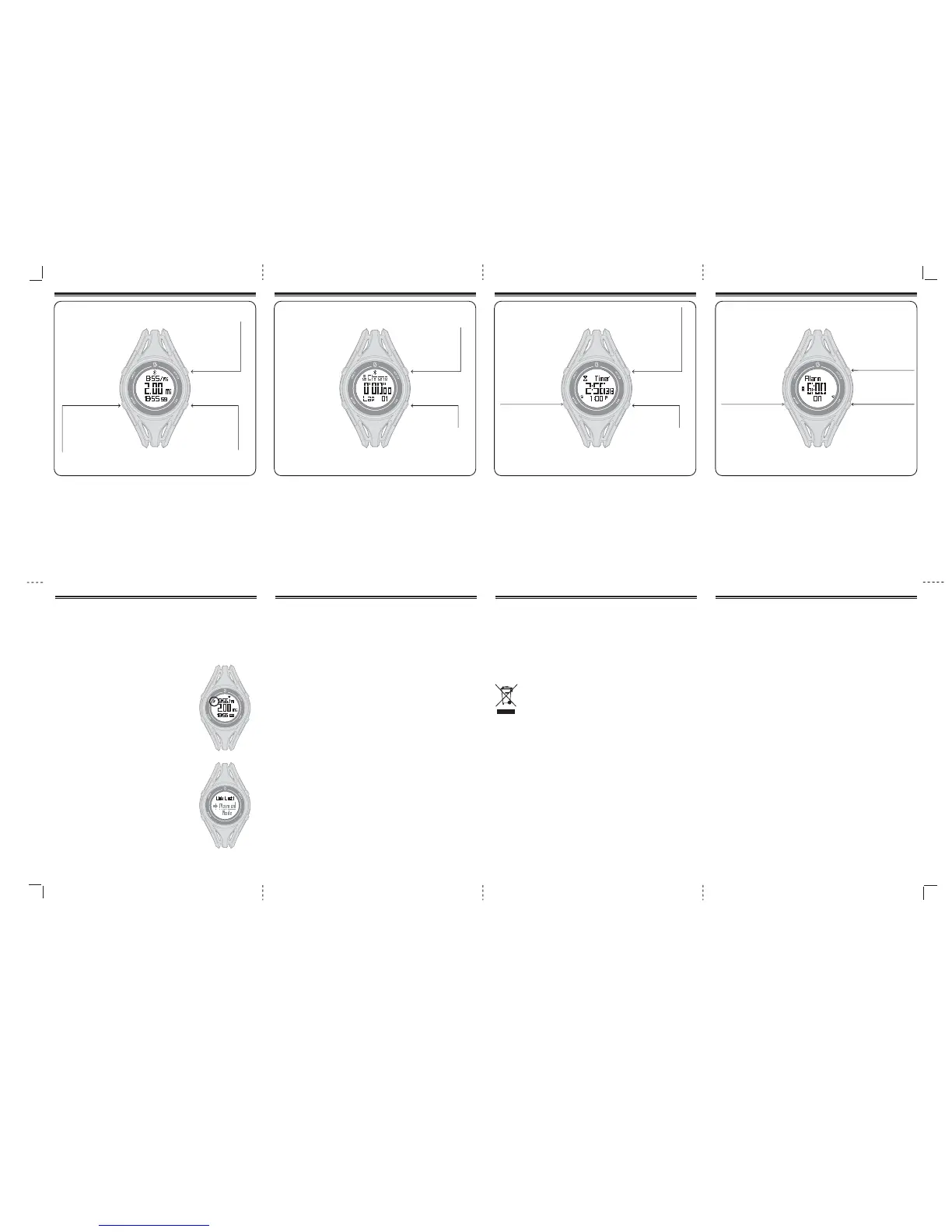 MODES | ALARM 109MODE | TIMER7MODE | WORKOUT (DISTANCE, PACE, CALORIES) 8MODE | CHRONO (STOPWATCH)