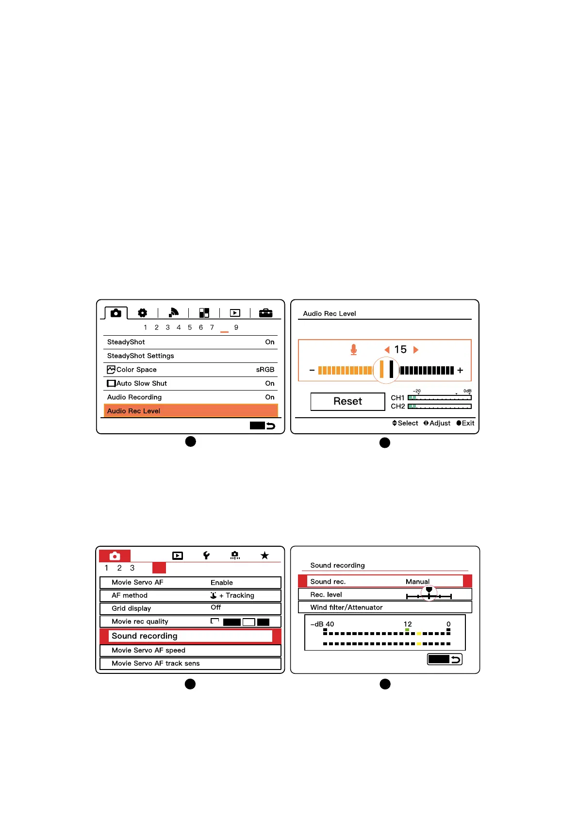 Einstellung der Aufnahme-Stufe der eingebauten Mikrofone für eine Canon-
