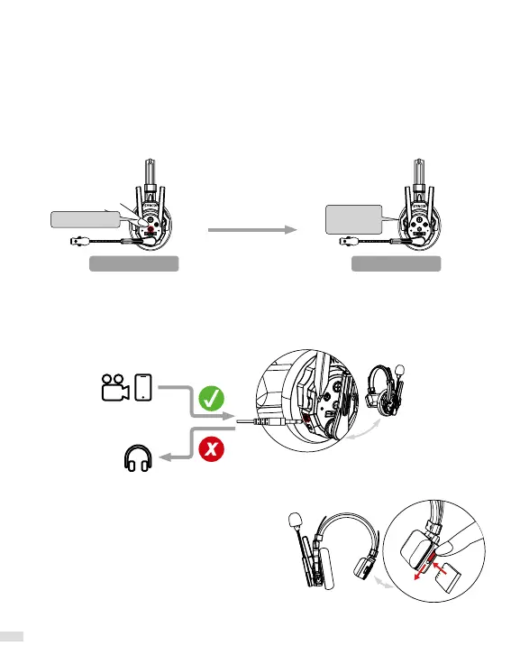 Connect the device(Camera, Camcorder, etc.) with the Xtalk headset via 3.5mm TRS port for