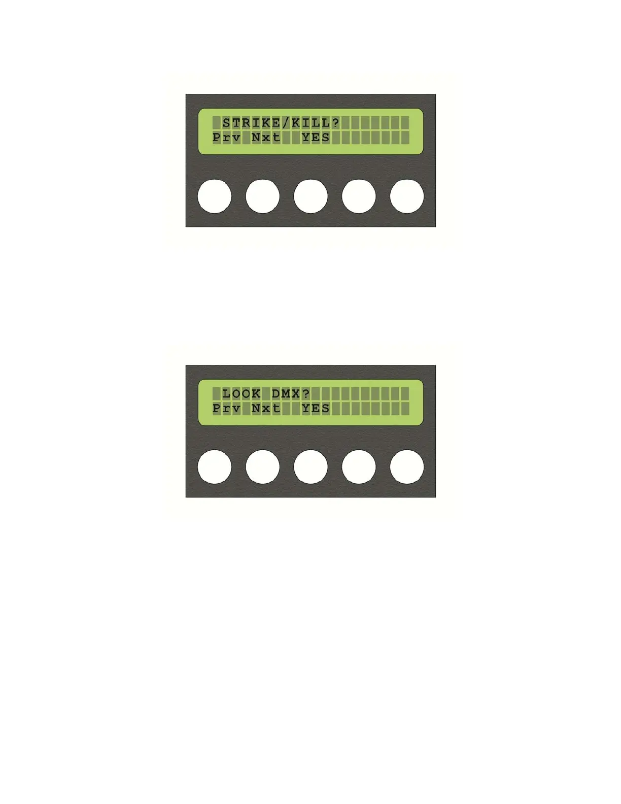 Thefinalmenuisthe“LOOKDMX”menu.Selectingbutton3“YES”takesyouintothemenu.