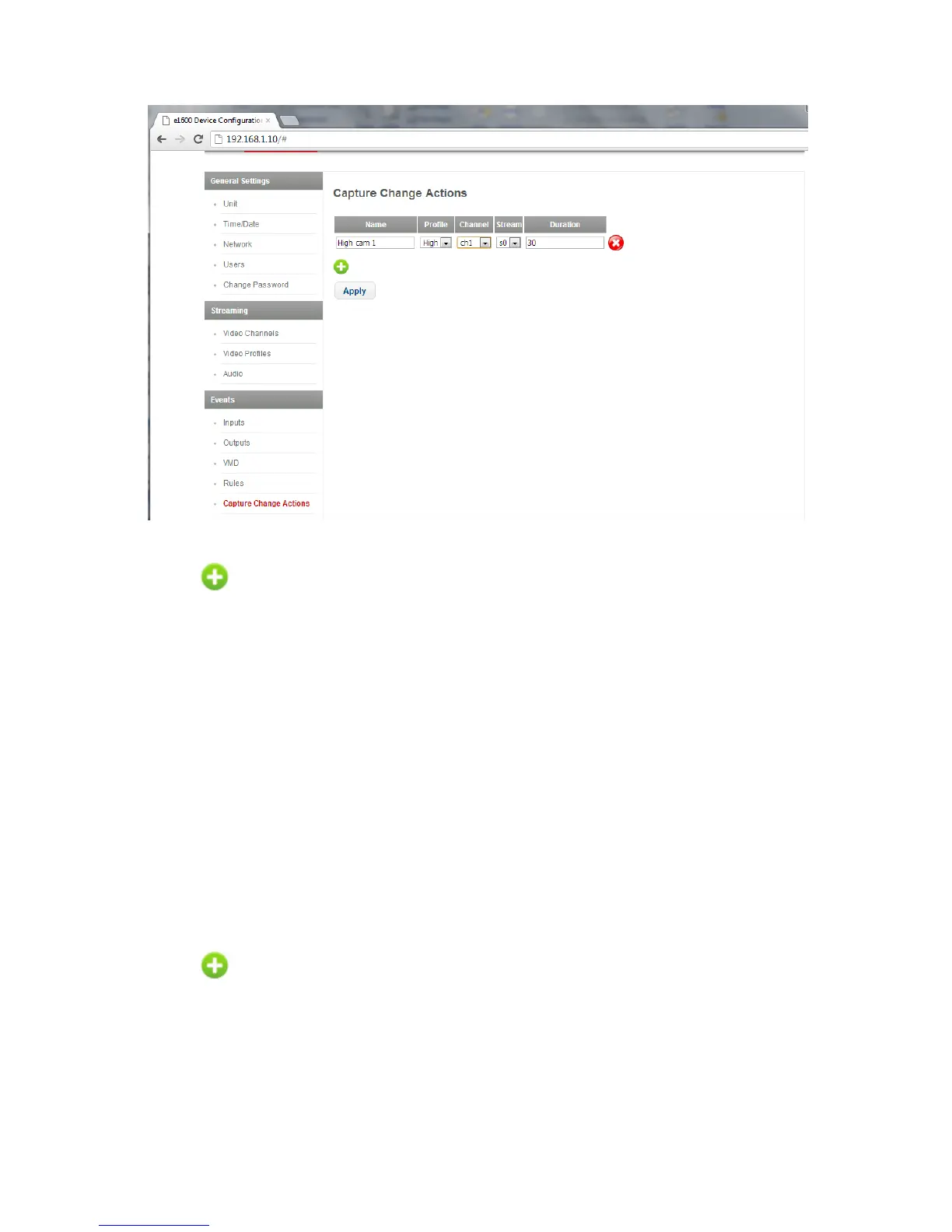 The Duration is the time in seconds the capture change action will be active for.