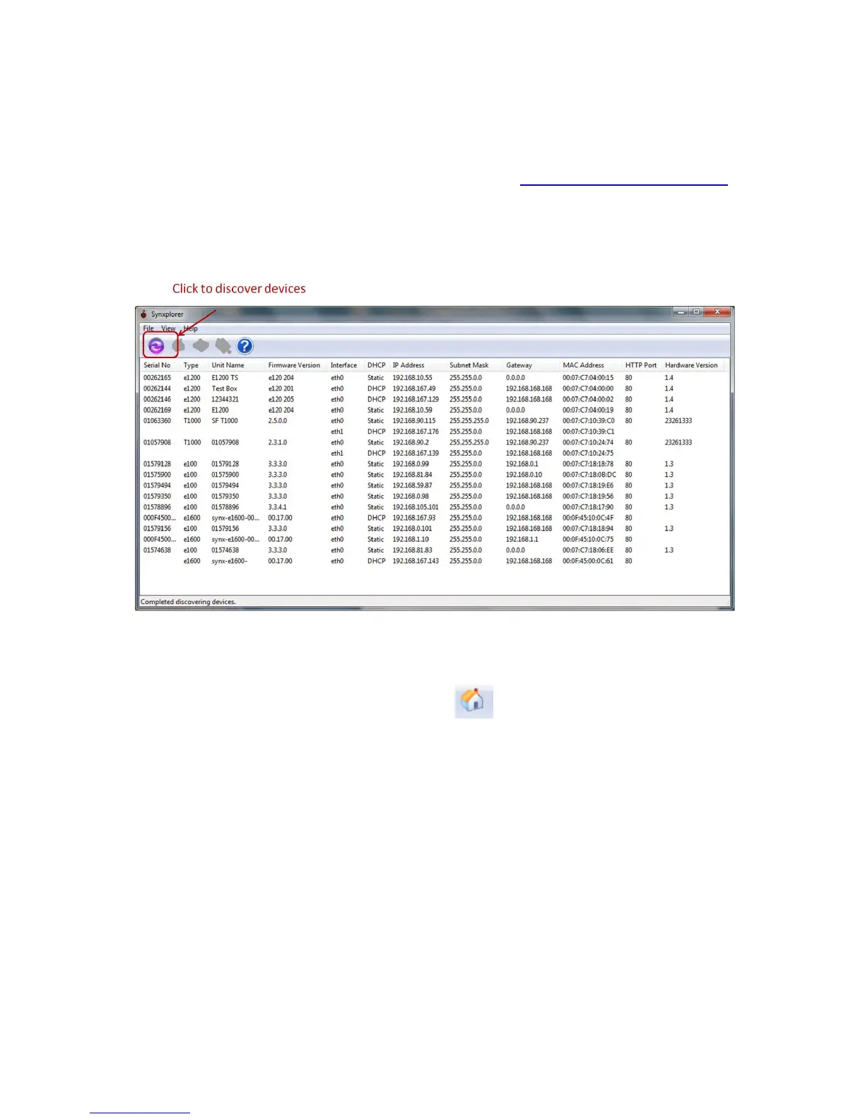 Synxplorer window will show a list of the serial numbers, models and network parameters for all the