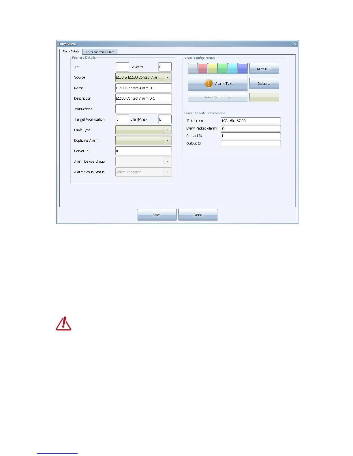 You can change the Visual Configuration options and Alarm Behaviour Rules as desired.